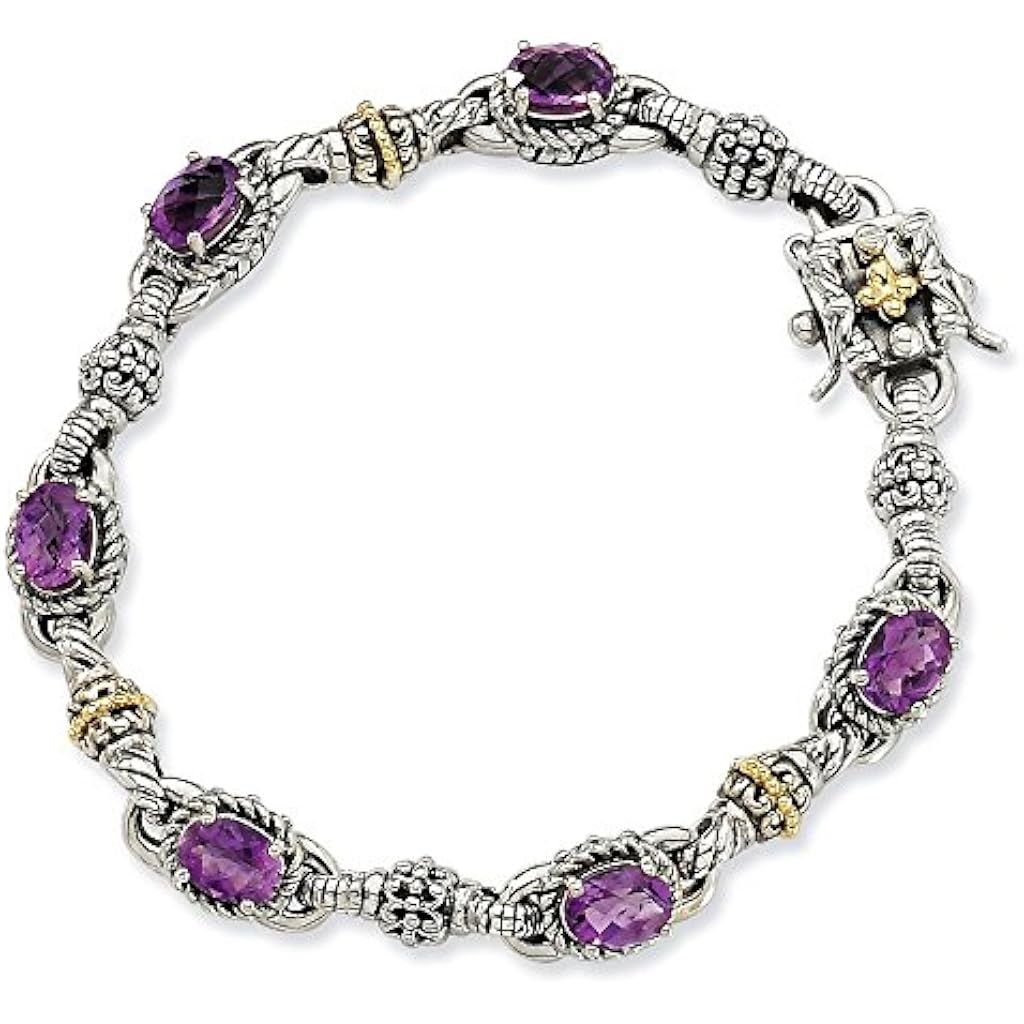 Solid 14ct Gold and Sterling Silver Amethyst Bracelet for Women