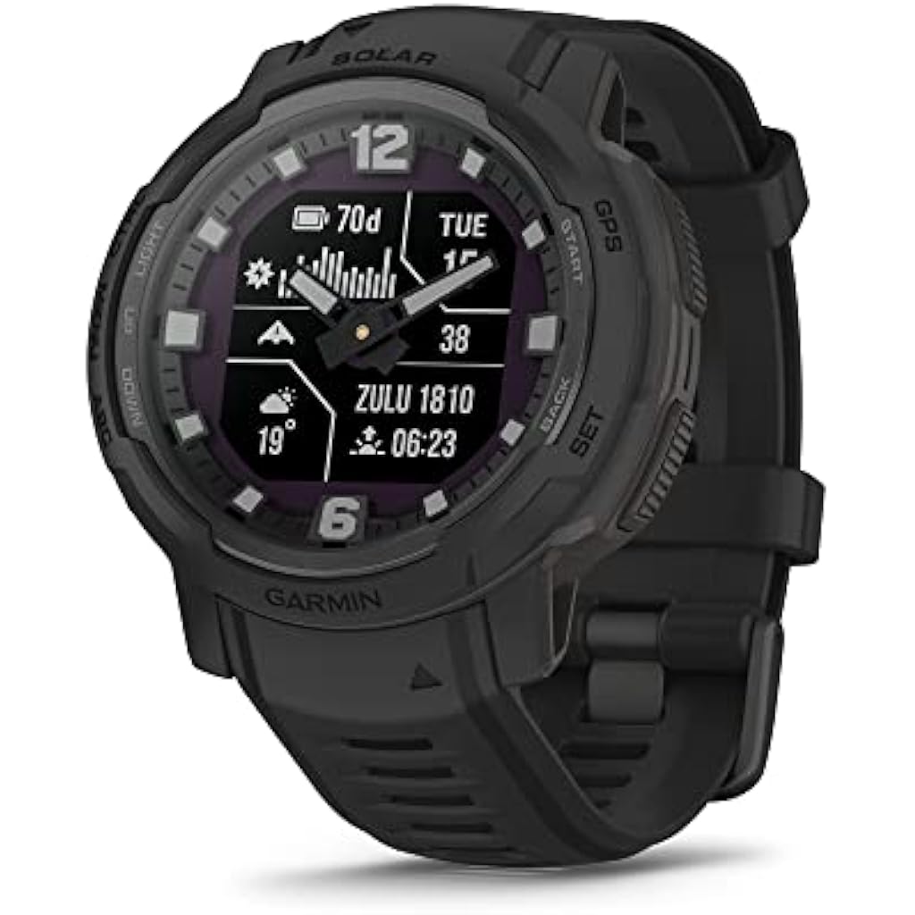 Garmin Instinct Crossover Solar - Tactical Edition, Rugged Hybrid Smartwatch with Solar Charging Capabilities, Tactical-Specific Features, Analog Hands and Digital Display, Black