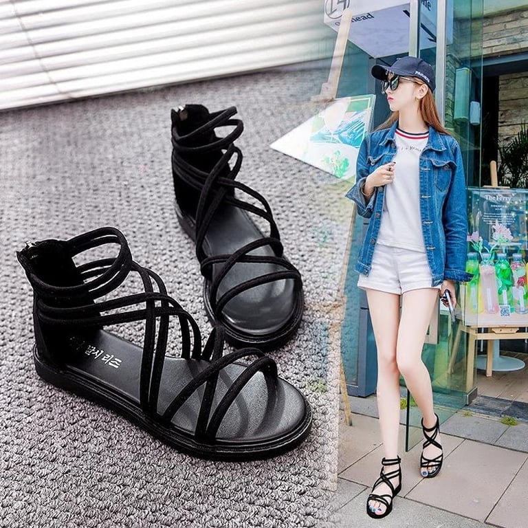 MANXIXI Brand Fashion Korean Version Flat Shoes Beautiful young Style Soft Bottom Roman Sandals For Women (35-40 Size)