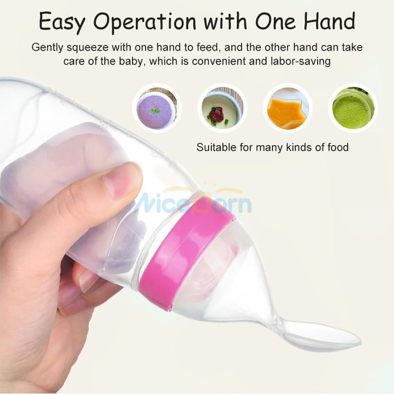 Squeeze Design: The squeeze design can effectively exercise the child's self-feeding and easy to control the intake. Soft silicone will not harm the child's mouth and help massage the gums.