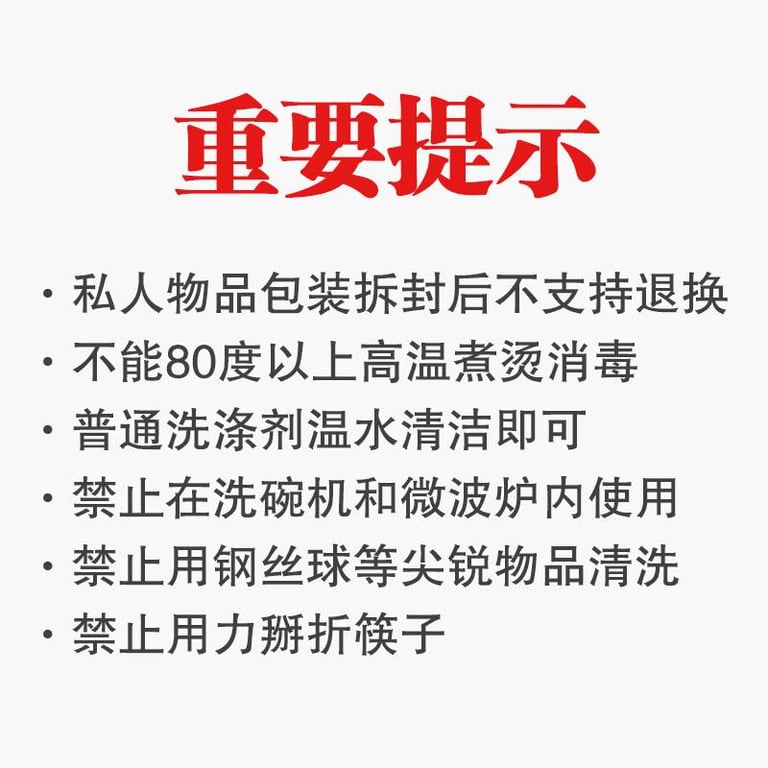 Important note: Chopsticks cannot be boiled and sterilized at a high temperature above 80 degrees!
