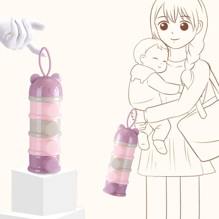 4-Layer Portable Stackable Baby Milk Powder Dispenser Container Storage Box Bottle Case with Side Opening Cover for Everyday Use