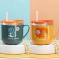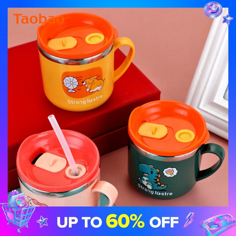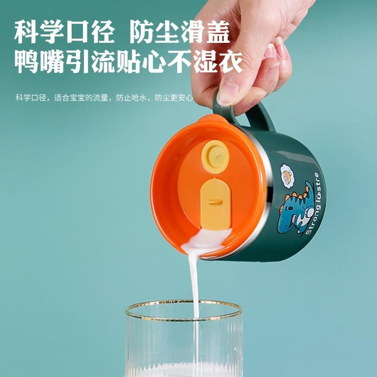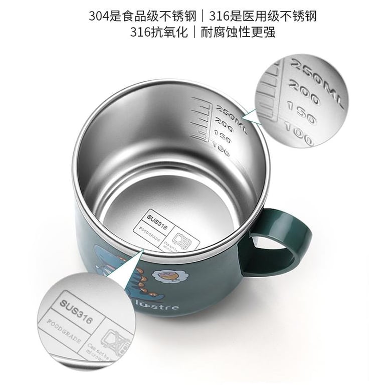 Baby Children's Household Drinking Cup with Straw Stainless Steel Baby Milk Cup with Scale Drop-Resistant Kindergarten Cup
