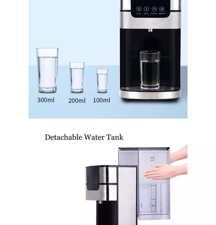 Selectable water level: 100ml, 200ml, 300ml, or continual water flow