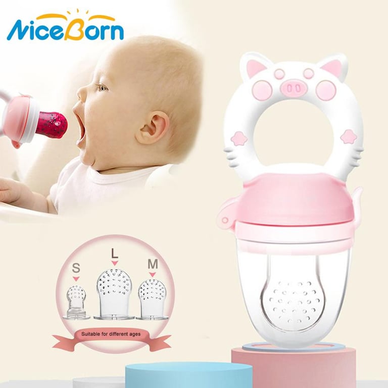 NiceBorn Baby Pacifier Fresh Food Feeder Newborn Infant Soother Fresh Fruit Milk Nibbler Safety Silicone BPA Free Toddlers 3 Different Sized Silicone Teething Pacifiers