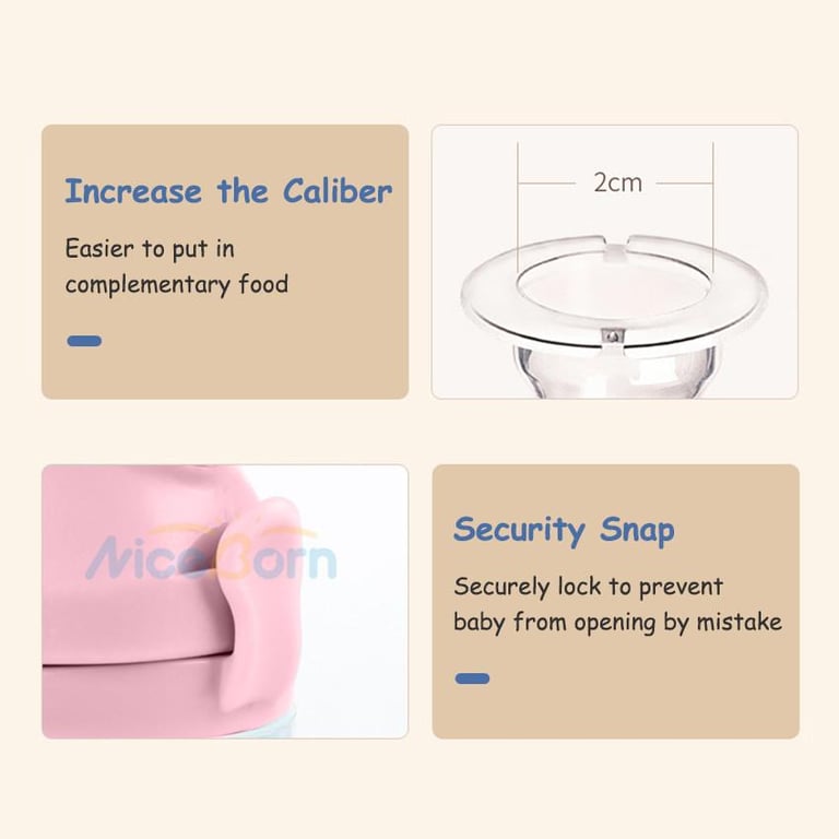 NiceBorn 3PCS Baby Food Feeder Kit Squeeze Feeding Bottle with Spoon Baby Bite Pacifier Temperature Spoon Fruit Vegetable Feeder Squeezing Food Bottles Rice Paste Juice Feeder Infant Fruit Feeder Pacifier Teething Toy