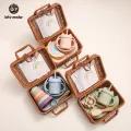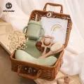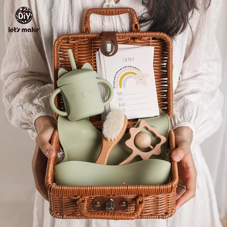 Let's Make Baby Food Feeder Kit Set Silicone Bowl,Sippy Cup Milestone Cards Newborn Shower Gift with Rattan box